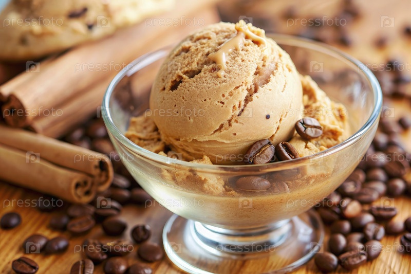 Кремовое мороженое из кофе с корицей и кофейными бобами