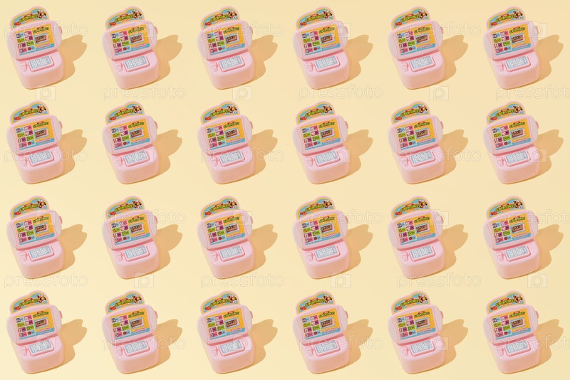 Креативная абстракция платежного кассового паттерна плоская прокладка на пастельно-желтом фоне минимализм
