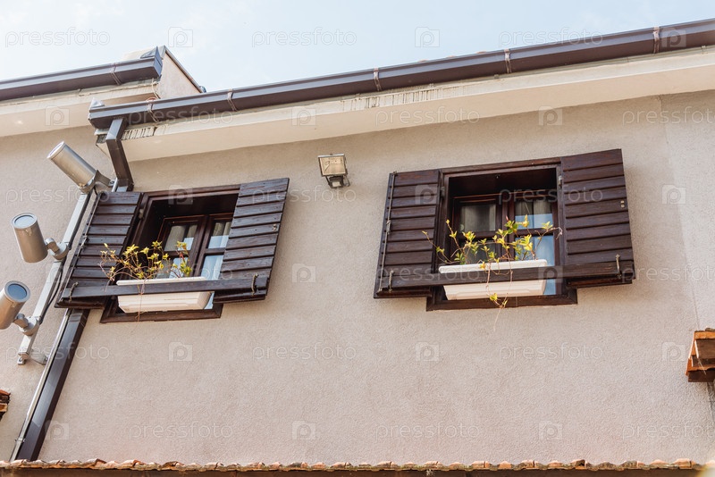 Украшенные цветами растения в горшке крыльцо балкон жилого здания внешний дизайн
