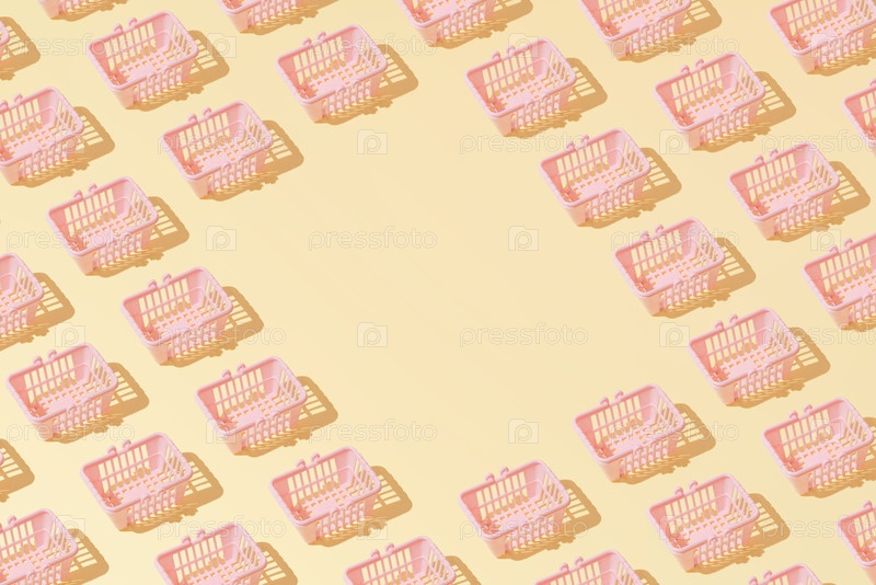 Креативная абстрактная абстракция продовольственный корзины корзина узора плоский слой на пастельно-желтом фоне минимализм с копированием пространства