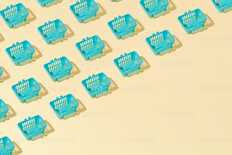 Креативная абстрактная абстракция продовольственный корзины корзина узора плоский слой на пастельно-желтом фоне минимализм с копированием пространства