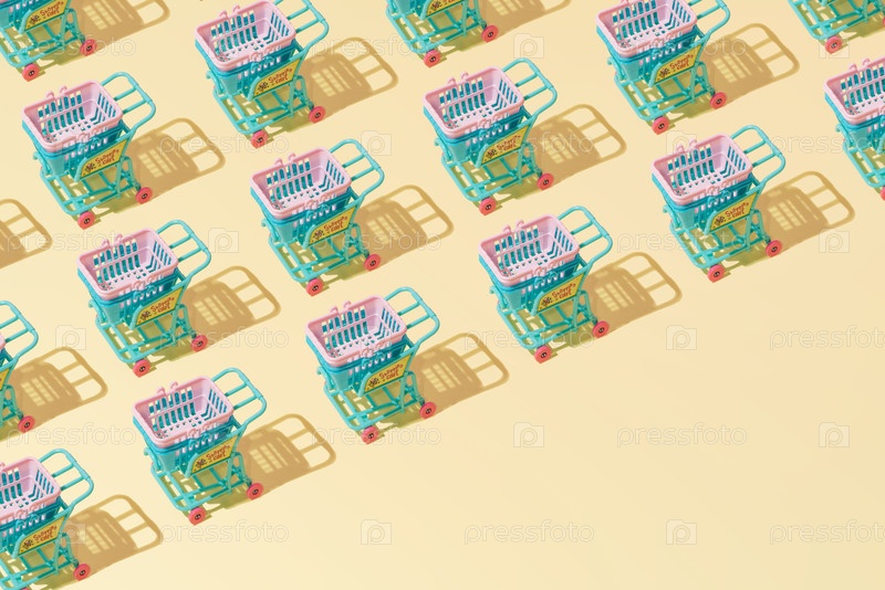 Креативный рисунок корзины с продуктами питания плоский слой на желтом фоне copy space