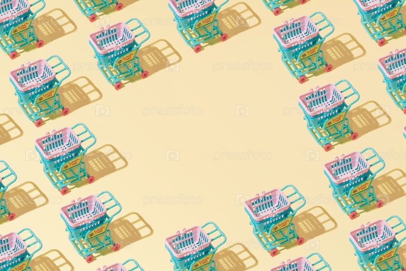 Креативная абстрактная абстракция продовольственный корзины корзина узора плоский слой на пастельно-желтом фоне минимализм с копированием пространства