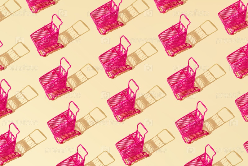 Креативный рисунок корзины продуктовой базы с плоской прокладкой на желтом фоне минимализм
