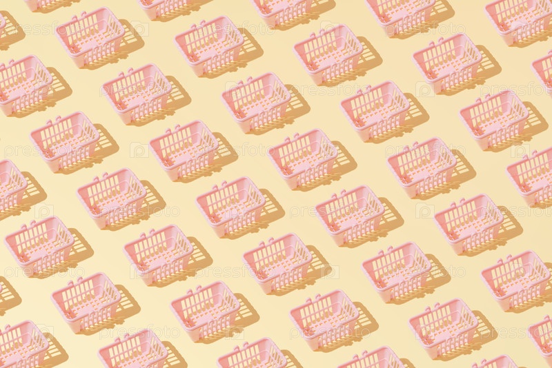Креативный рисунок корзины продуктовой базы с плоской прокладкой на желтом фоне минимализм