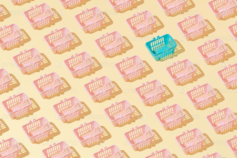 Креативная абстрактная абстракция продуктовый корзину корзинки узора плоский лежит на пастельном желтом фоне минимализм