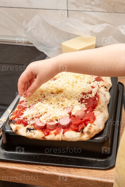 Семейный мужчина и девушка готовят домашнюю пиццу на кухне, отец с дочерью проводят время вместе