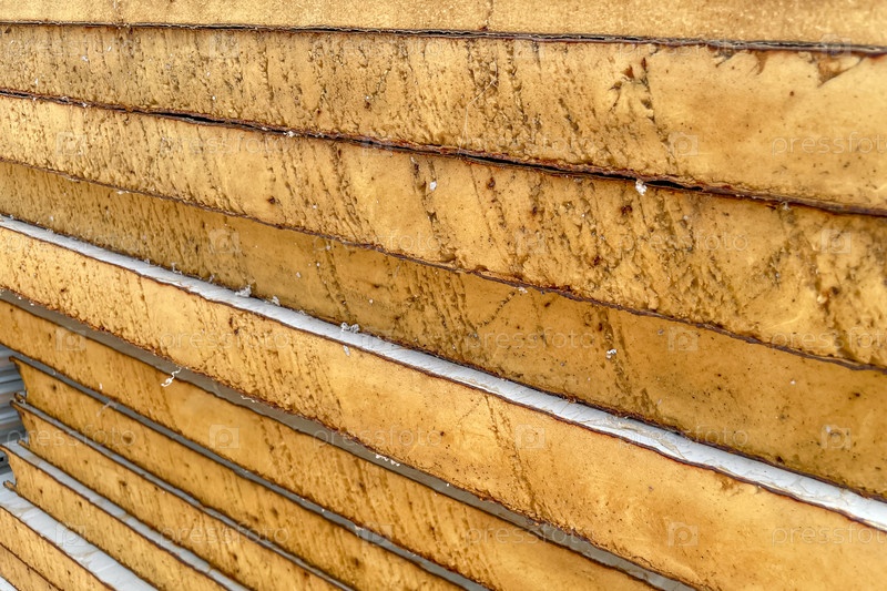 Столбы экологической изоляции из минеральной шерсти, хранящиеся на стройплощадке