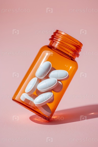 Таблетная коробка с красочными медицинскими витаминными таблетками лекарственные таблетки на розовом фоне AI Generative