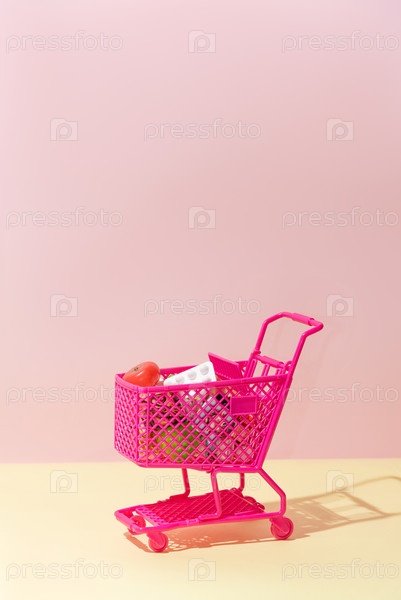 Покупательская корзина Торговая корзинка Продовольственная натюрморт Желтый Розовый Фон продуктовый творческий