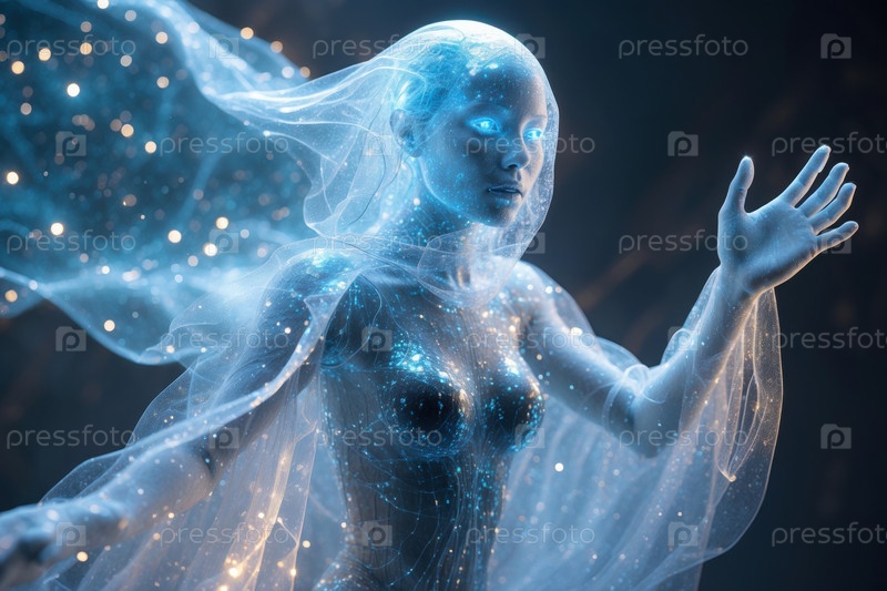 Женщина-гуманоид футуристическая космическая сущность, человек на будущем научно-фантастическом завтрашнем фоне AI Generative