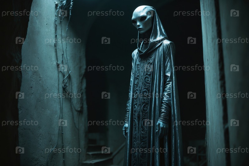Женщина-гуманоид футуристическая космическая сущность, человек на будущем научно-фантастическом завтрашнем фоне AI Generative