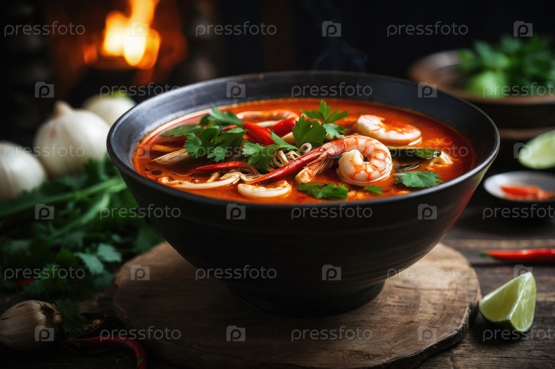Generative Традиционный том-юм тайский лаосский суп в миске ужин обед, овощи вегетарианская кухня AI