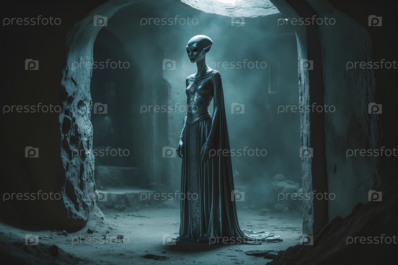 Женщина-гуманоид футуристическая космическая сущность, человек на будущем научно-фантастическом завтрашнем фоне AI Generative