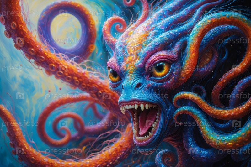 AI Generative Фантастическое мифологическое животное из сказки, подводное существо с ласточками