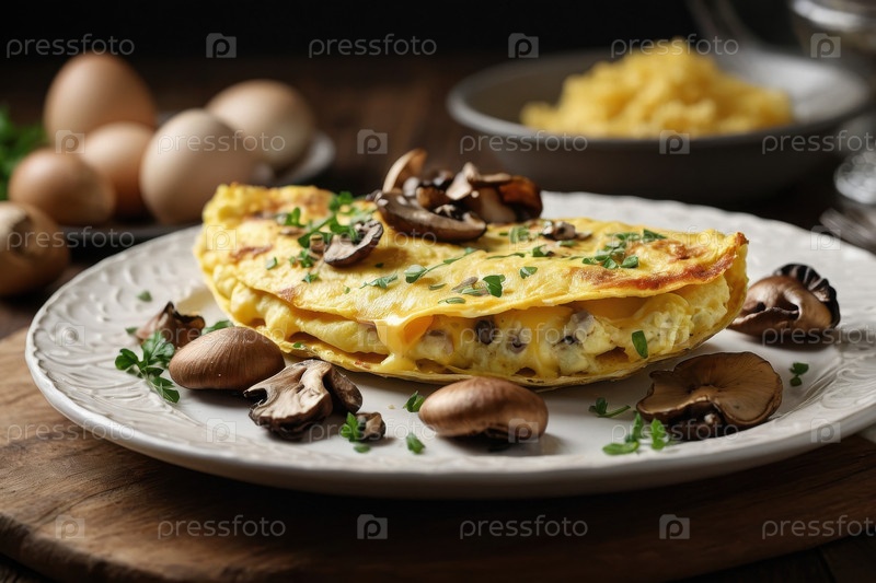 ИИ генеративные яйца французского омлета с грибами и сыром, вкусная традиционная кулинарная бранч-кухня