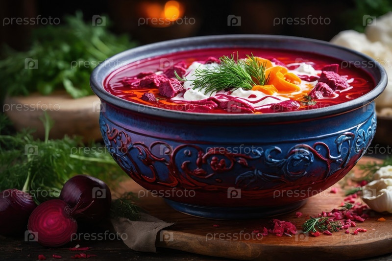 AI Generative Традиционный украинский борщ-суп в миске ужин обед, овощи вегетарианская кухня