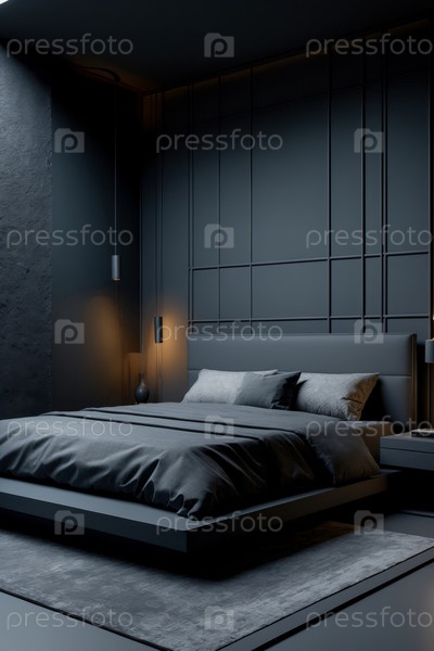 ИИ генеративный современный уютный интерьер спальня квартира комната комнаты серый цвет, комфортный дизайн дома