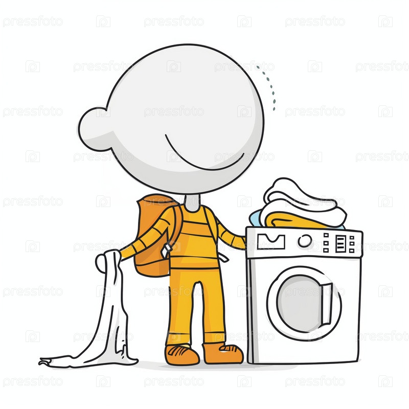 Stickman делает стирку с помощью стиральной машины