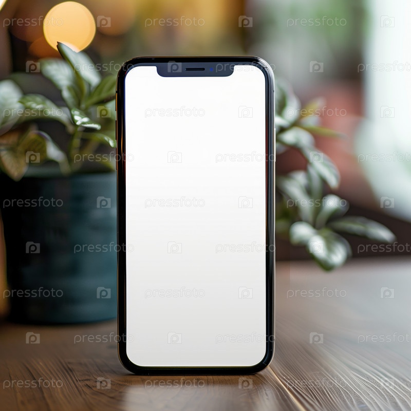 Смартфон с пустым экраном на размытом фоне