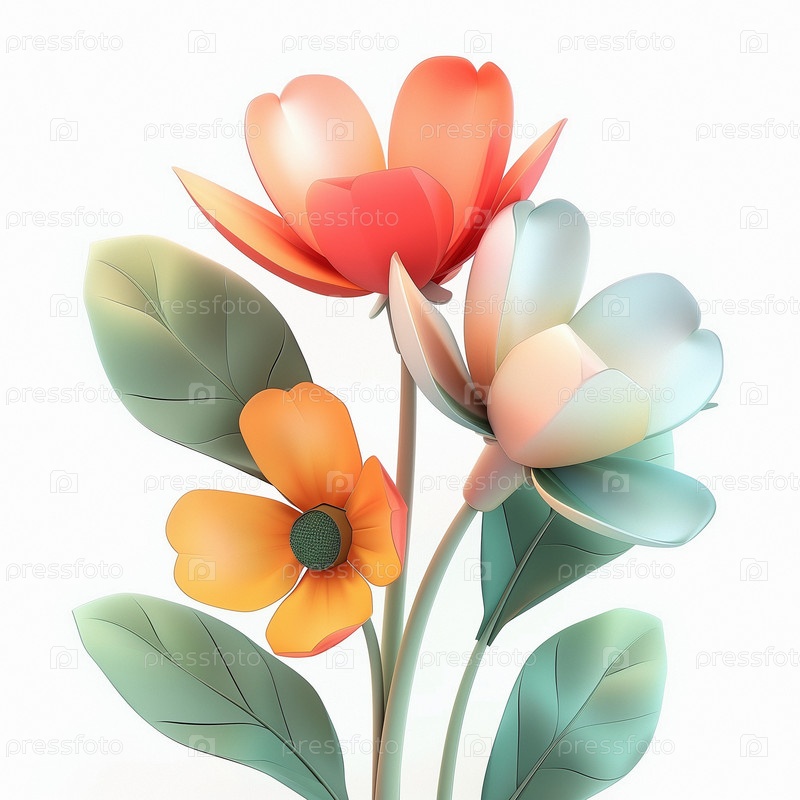 Композиция трехмерных цветов на изолированном белом фоне A