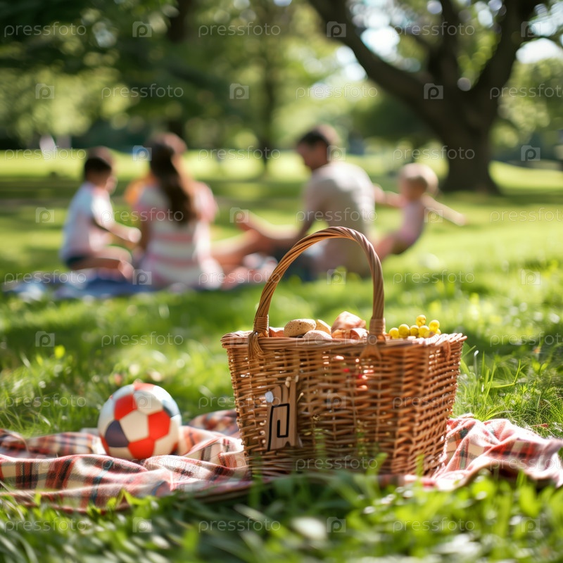 Семья проводит пикник в парке