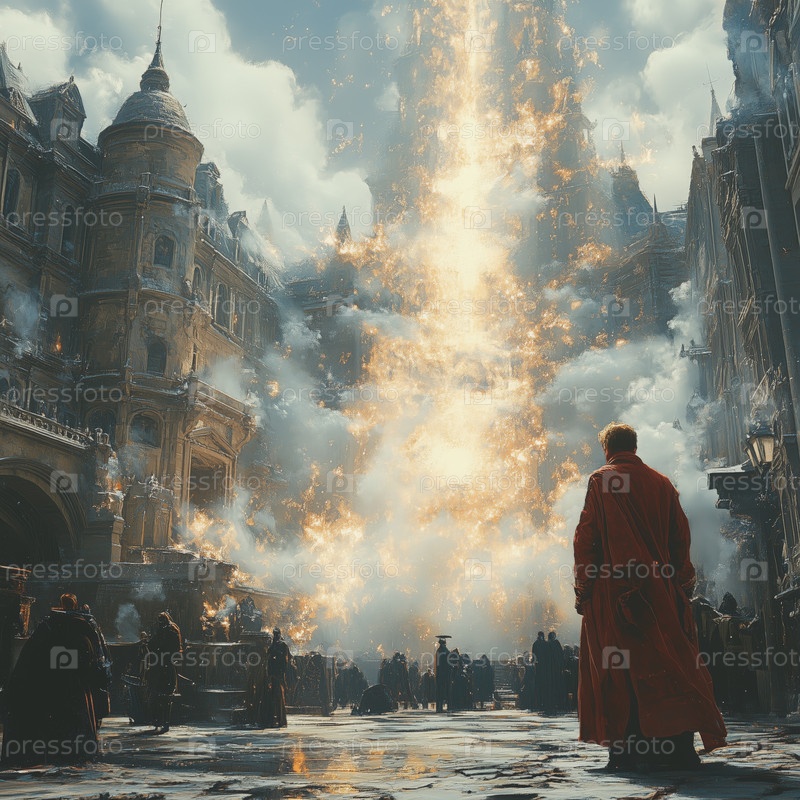 Человек в красном пальто стал свидетелем волшебного взрыва на городской площади