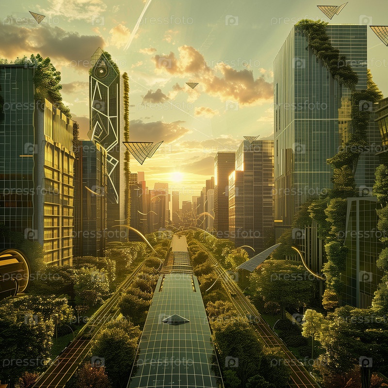 Концепция города будущего с возобновляемыми источниками энергии