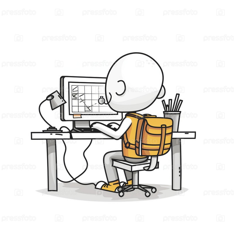 Стикмен работает за столом в офисе