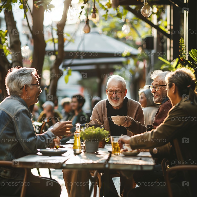 Старшие друзья наслаждаются кофе в кафе