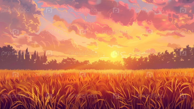 Осенний закат над созревающим пшеничным полем