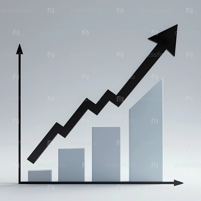 Визуально яркий график роста иллюстрирует впечатляющий рост показателей, с изящными строками и смелой стрелкой, указывающей вверх, символизирующей успех и улучшение Генеративный ИИ