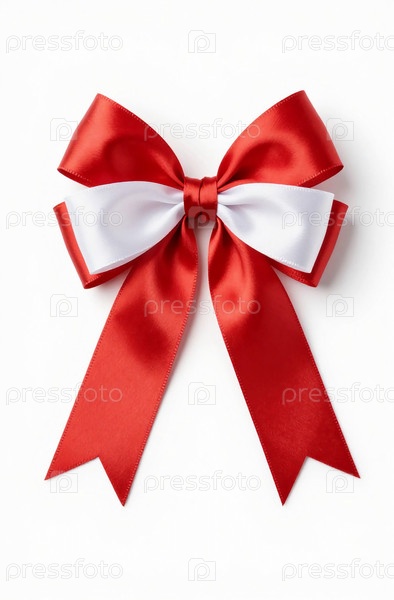 Потрясающий красный бант прекрасно сидит на чистом белом фоне, демонстрируя свою гладкую атласную текстуру Generative AI