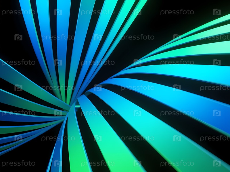 Очаровательные ленты в ярко-зеленой и синей окраске изгибаются и элегантно поворачиваются на темном фоне, образуя увлекательный и динамичный узор, который привлекает внимание Генеративный ИИ