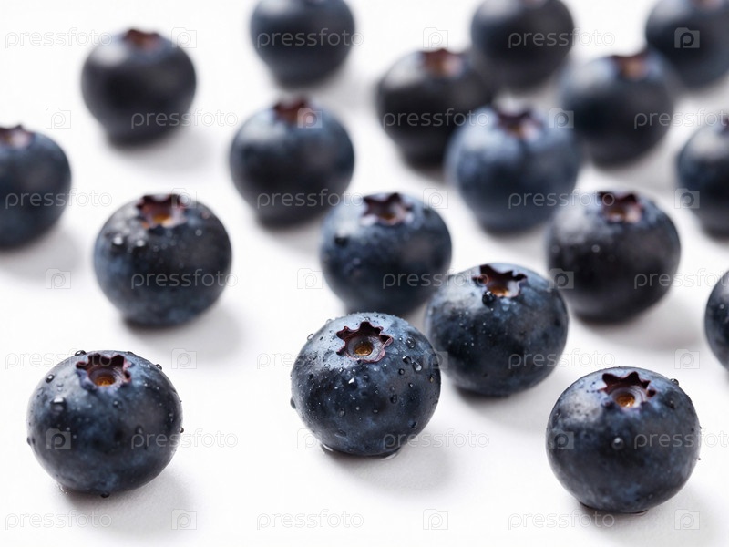Группы сочных черников лежат разбросаны по ярко-белой поверхности, каждая с небольшим количеством капель воды блестят под нежным светом Generative AI