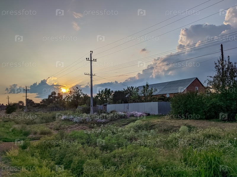 Закат над сельской окраиной
