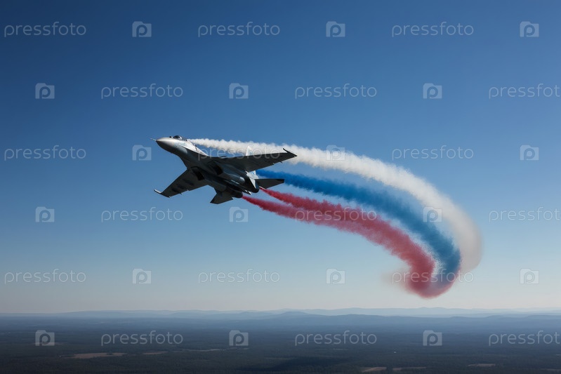 Российский истребитель с нарисованным российским флагом в небе над Красной площадью на Параде Победы 9 мая