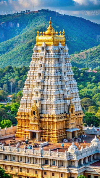 Вид с воздуха храма Тирумала Венкатесвара в городе Тирупати, Индия