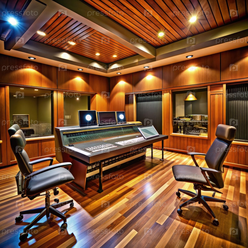 Студия звукозаписи с деревянными стенами и полом