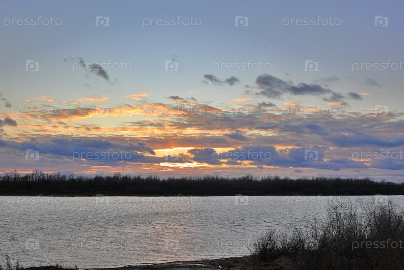 Закат над рекой Иртыш в Омской области