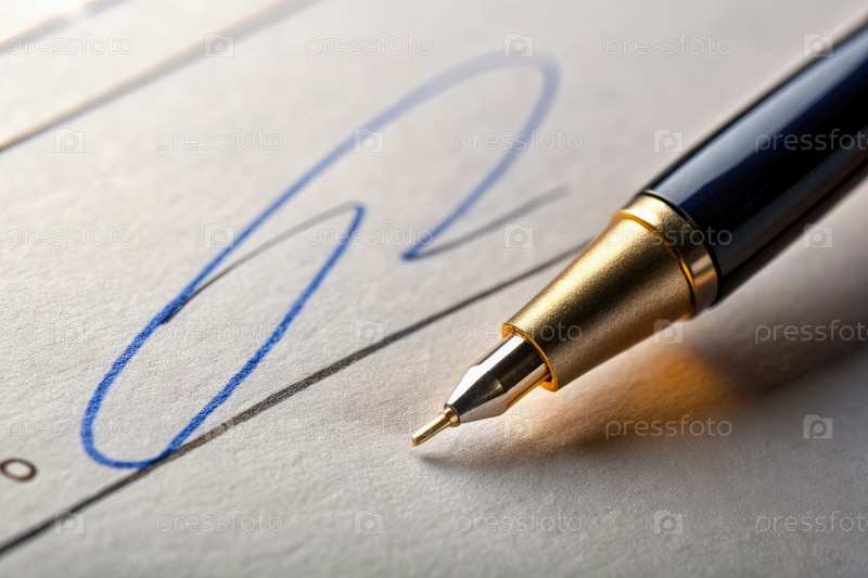 Золотоокрашенная ручка, опирающаяся на подписанный документ