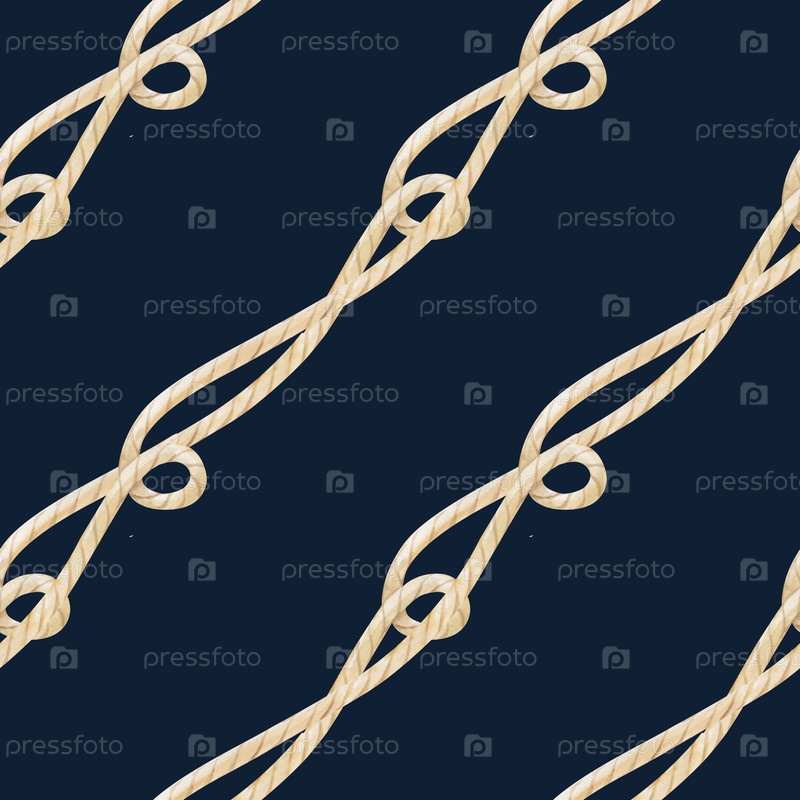 Бесшовный рисунок переплетенных бежевых веревок с петлями. акварельная иллюстрация натурального шнура на темном фоне. реалистичный диагональный шаблон для морской темы, рыбалки и хобби