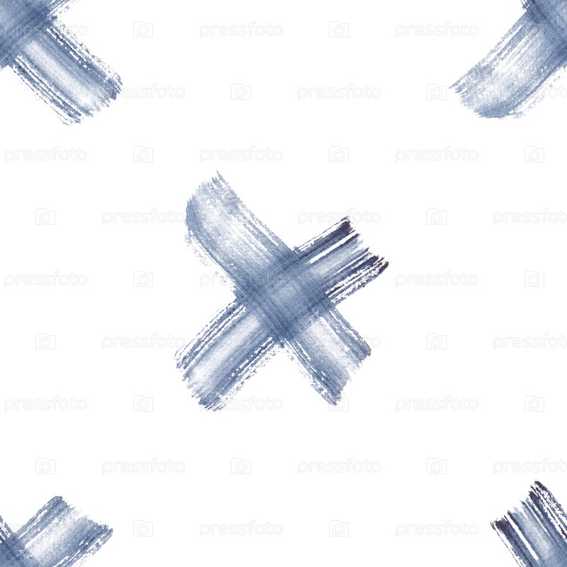Бесшовный рисунок с крестообразными мазками на изолированном фоне. Акварельная иллюстрация серых пятен краски в стиле гранж. Фон для обоев, упаковки и печати