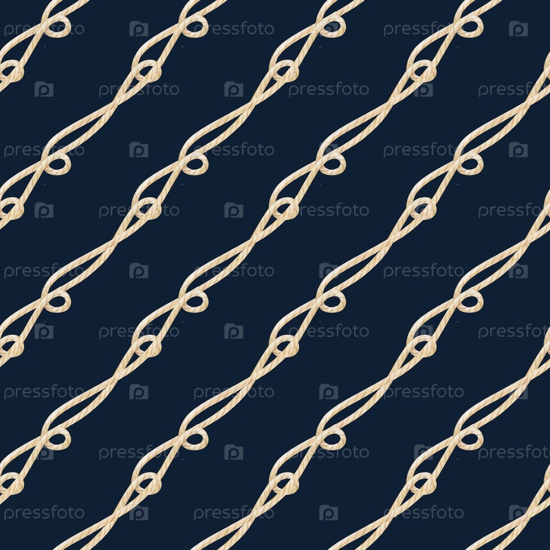 Диагональный бесшовный рисунок переплетенных бежевых веревок с петлями. Акварельная иллюстрация натурального шнура на темном фоне. Реалистичный шаблон для морской темы, рыбалки и хобби