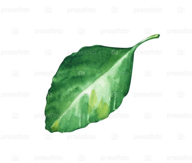 Ручная акварель зеленый лист с естественной текстурой. Элегантный ботанический элемент изолирован на белом цвете. Иллюстрация для экологически чистого брендинга, свадебных приглашений, весенних дизайнов и органической косметической упаковки
