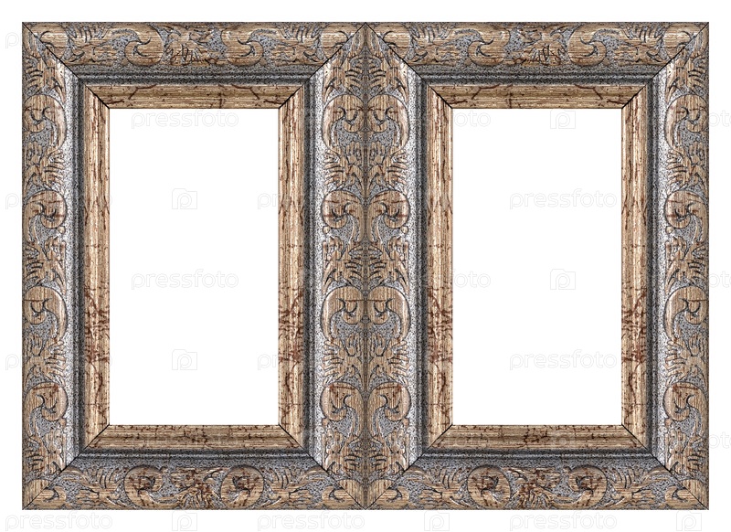 Двойная золотая рама (диптих) для картин, зеркал или фотографий, изолированных на белом фоне