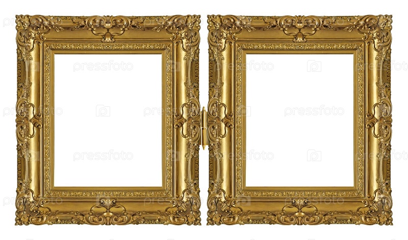 Двойная золотая рама (диптих) для картин, зеркал или фотографий, изолированных на белом фоне