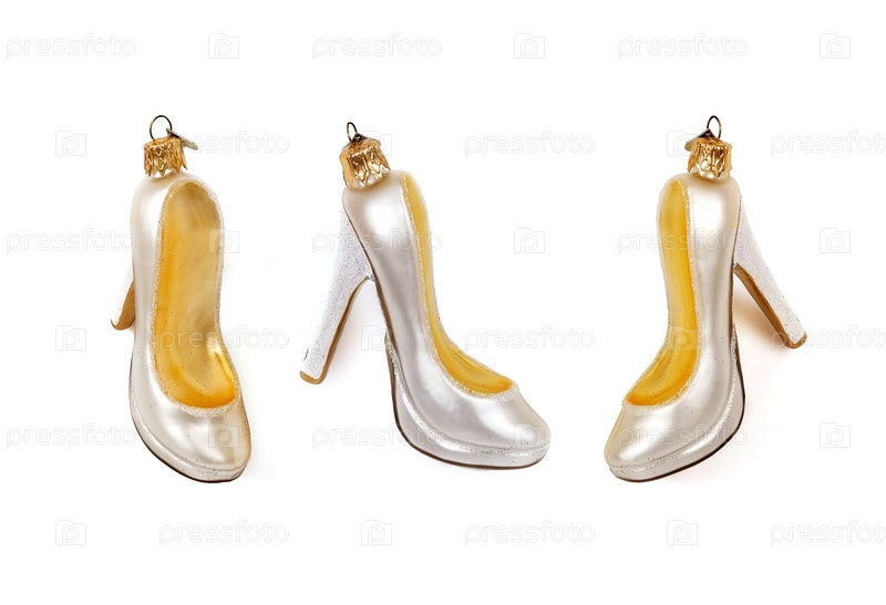 Рождественские игрушки в виде обуви с каблуками, изолированные на белом фоне