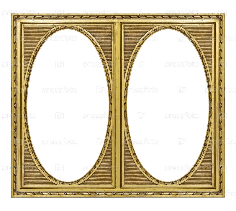 Двойная золотая рама (диптих) для картин, зеркал или фотографий, изолированных на белом фоне