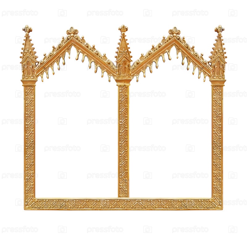 Золотая готическая рама для картин, зеркал или изолированной фотографии на белом фоне